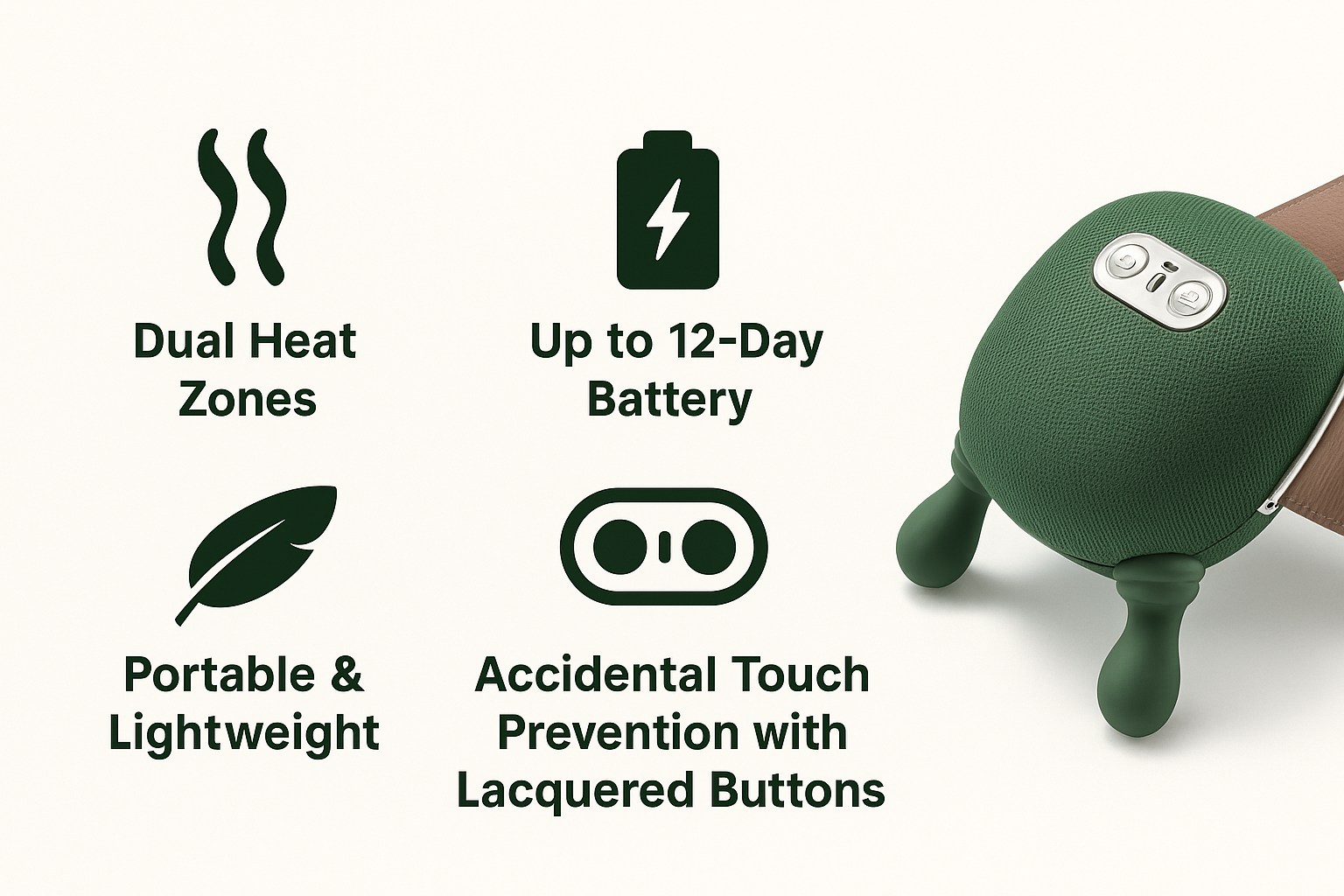 Dual Heat Therapy β Soothing warmth that melts away stiffness.